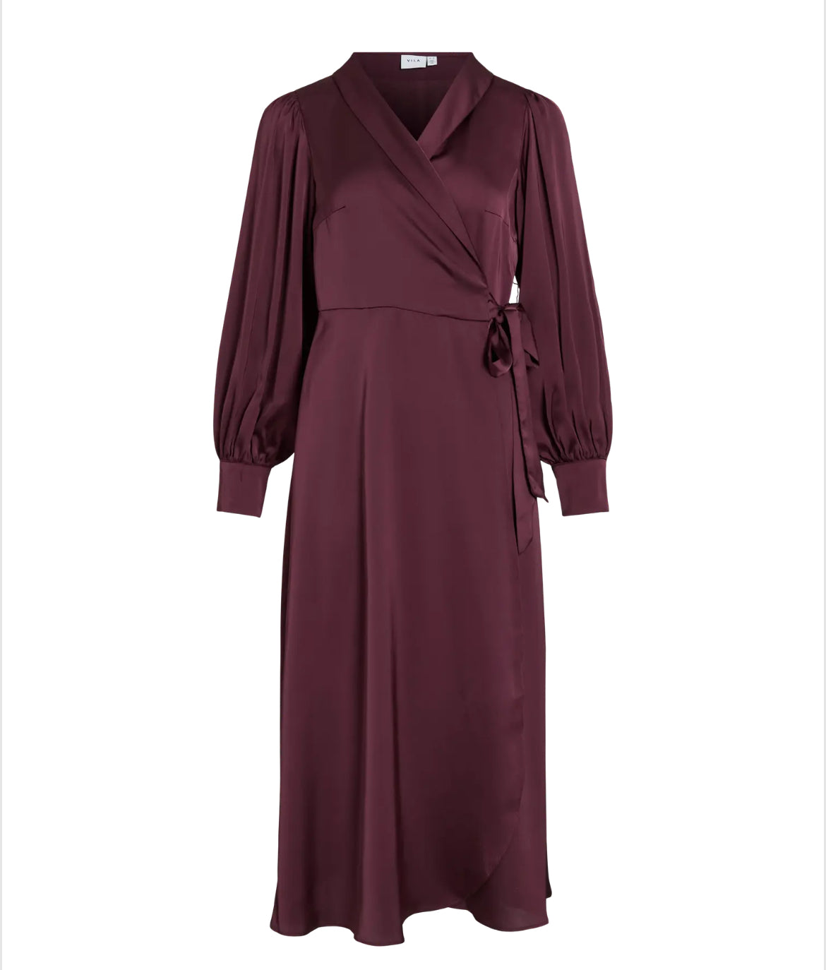 Kjole fra Vila, med v-udskæring, slå-om effekt og lange ærmer.